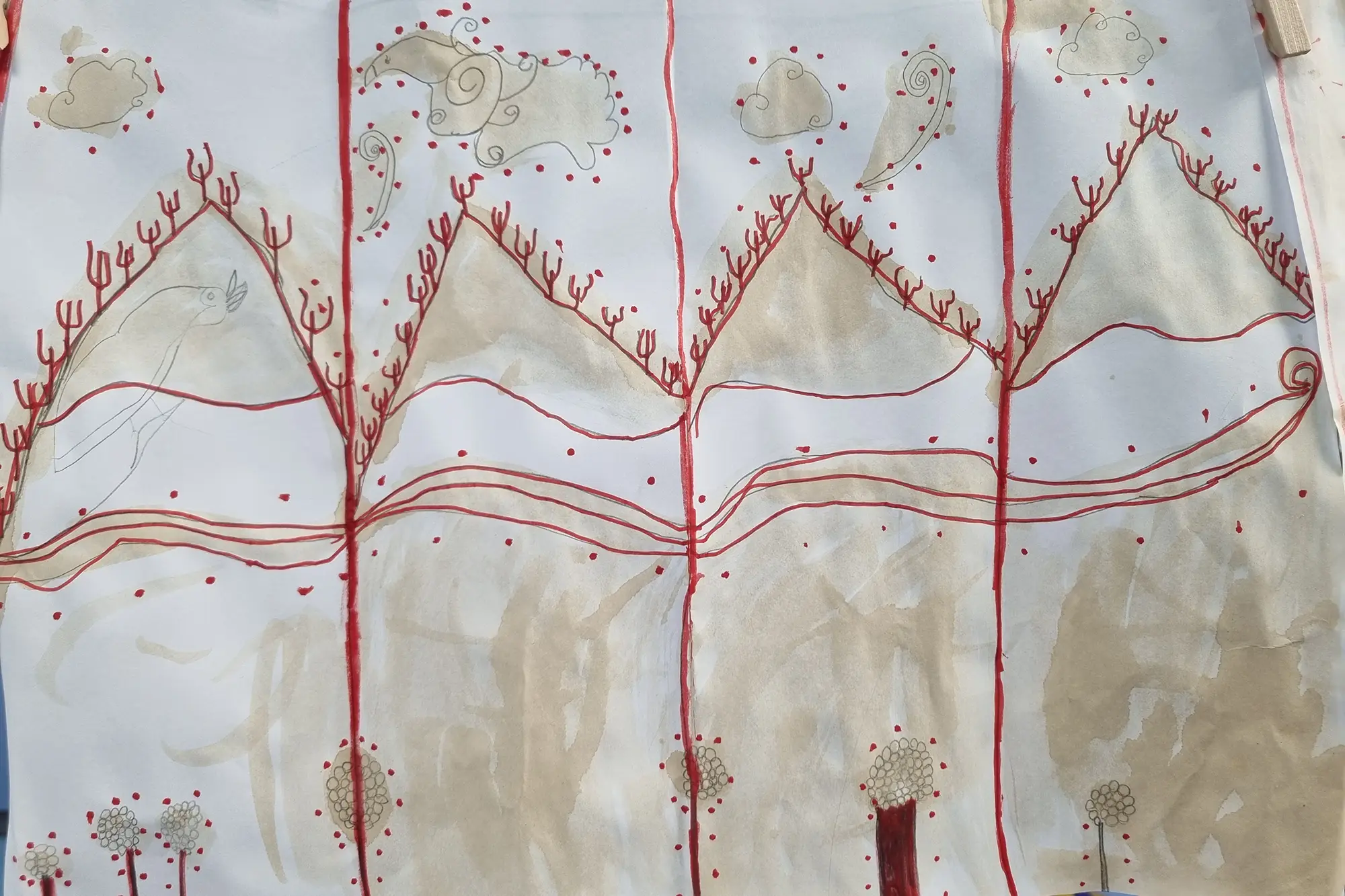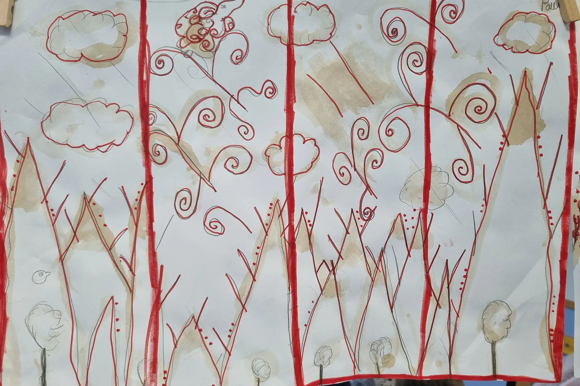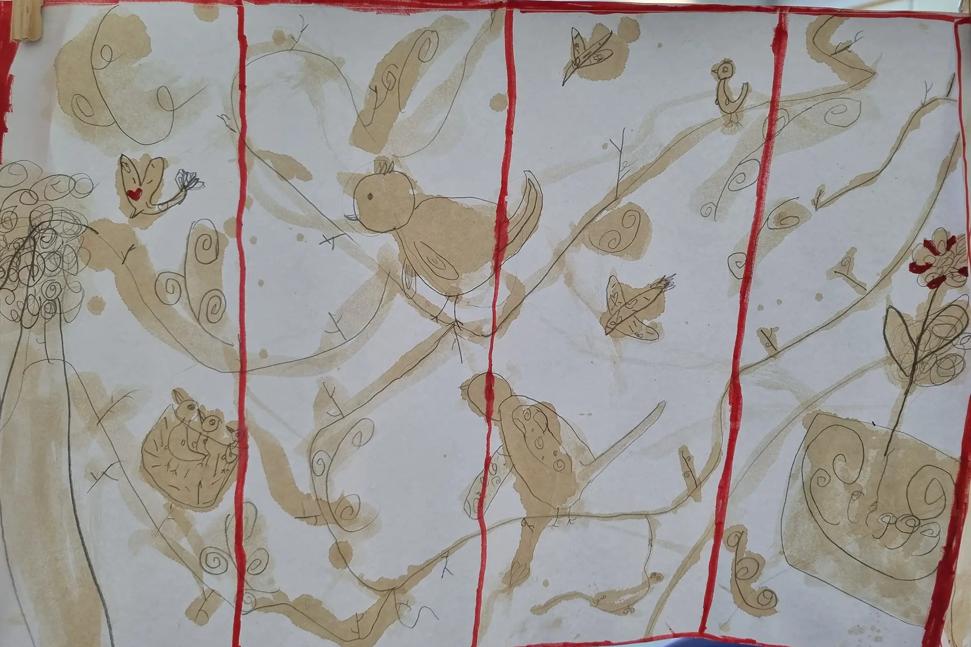 Inspirados por los pintores tradicionales chinos sobre seda, nuestros alumnos de 1º de Arte crearon estos impresionantes paneles decorativos. Con solo lápiz, café y rotulador rojo, experimentaron con la textura y el contraste para lograr un delicado efecto oriental. Todos los alumnos quedaron muy satisfechos con el resultado final.