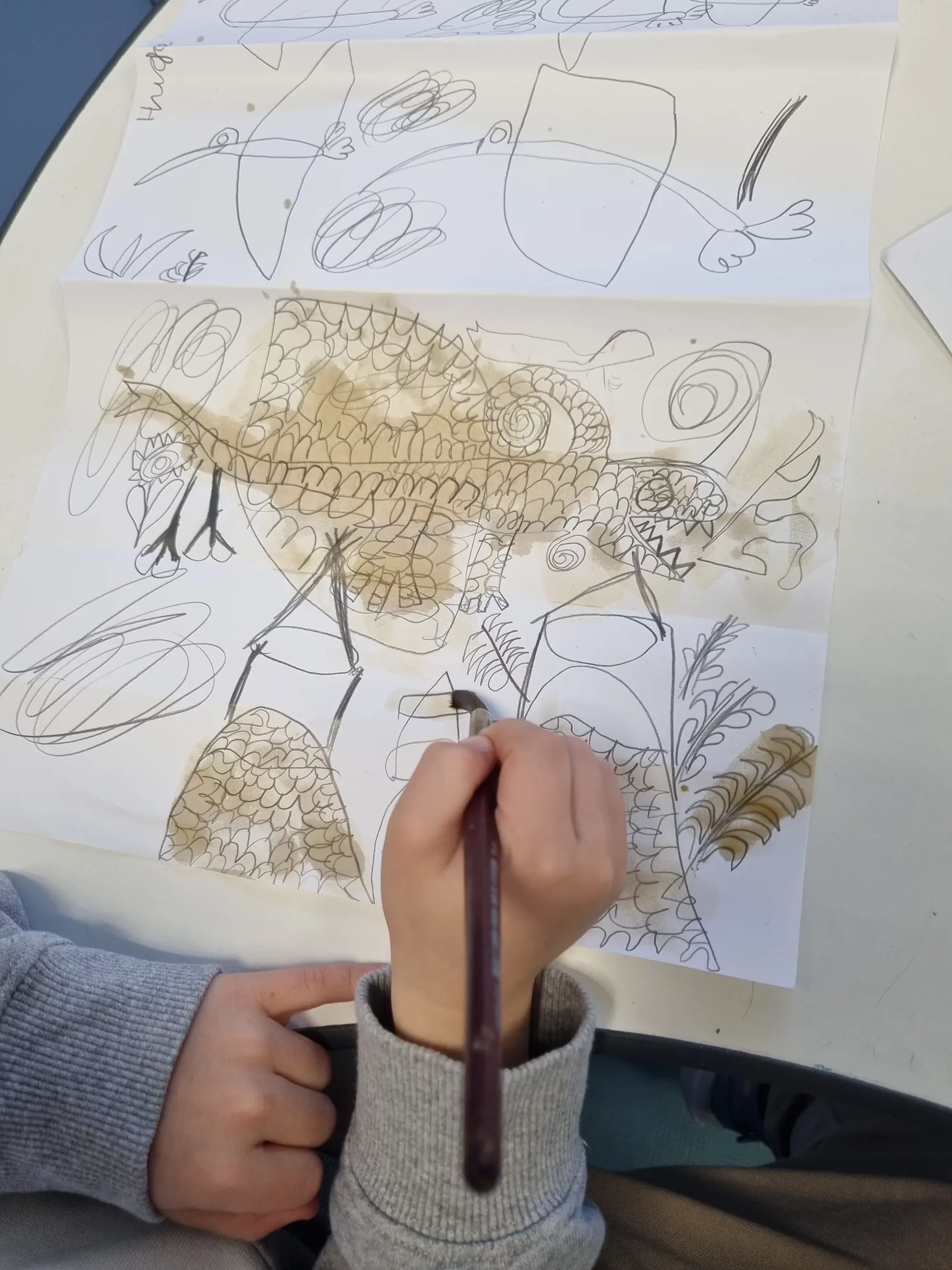 Inspired by traditional Chinese silk painters, our 1º Art students created these stunning decorative panels. With just pencil, coffee and red marker, they experimented with texture and contrast to achieve a delicate oriental effect. The students were all so pleased with their finished work.