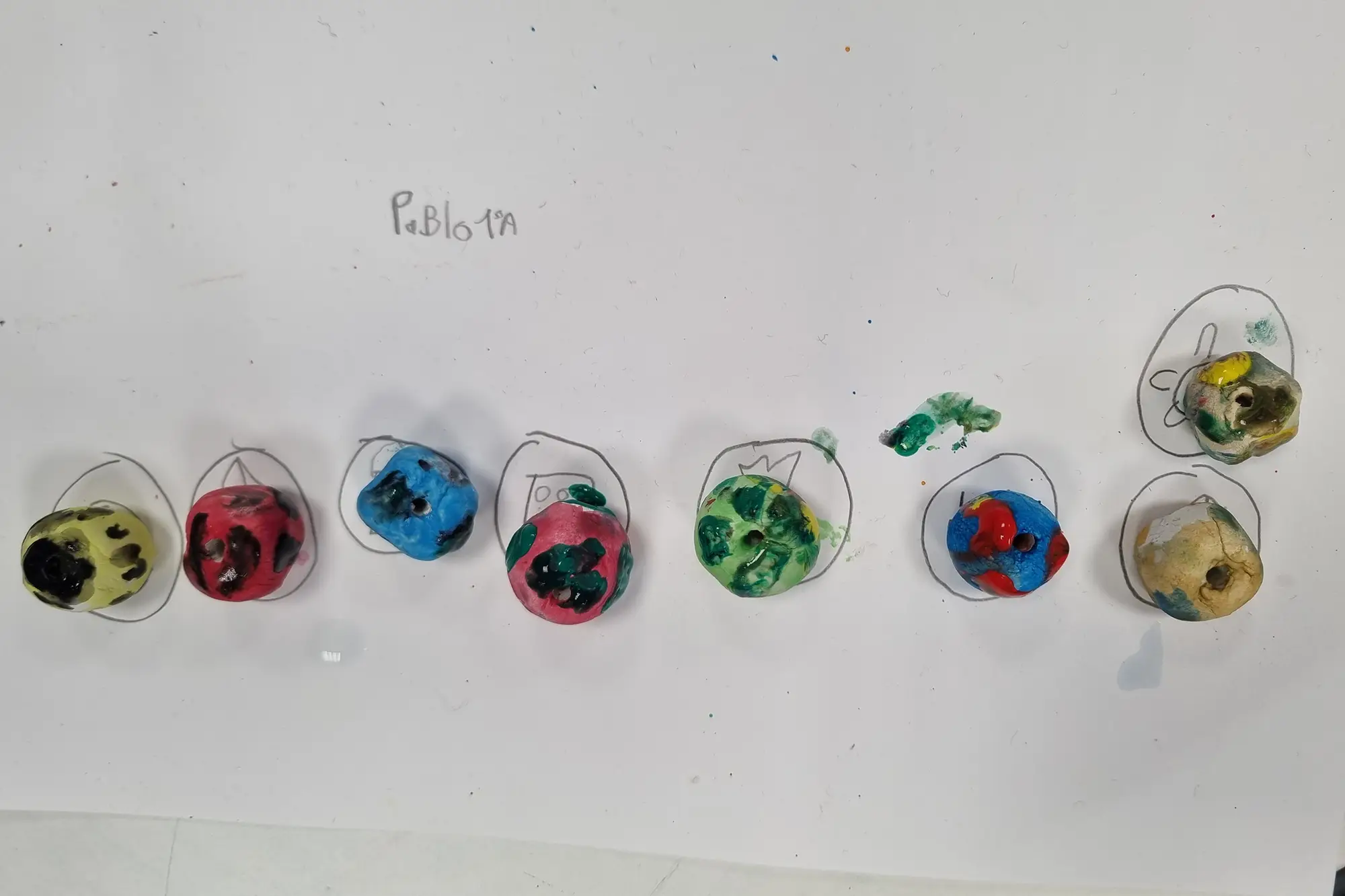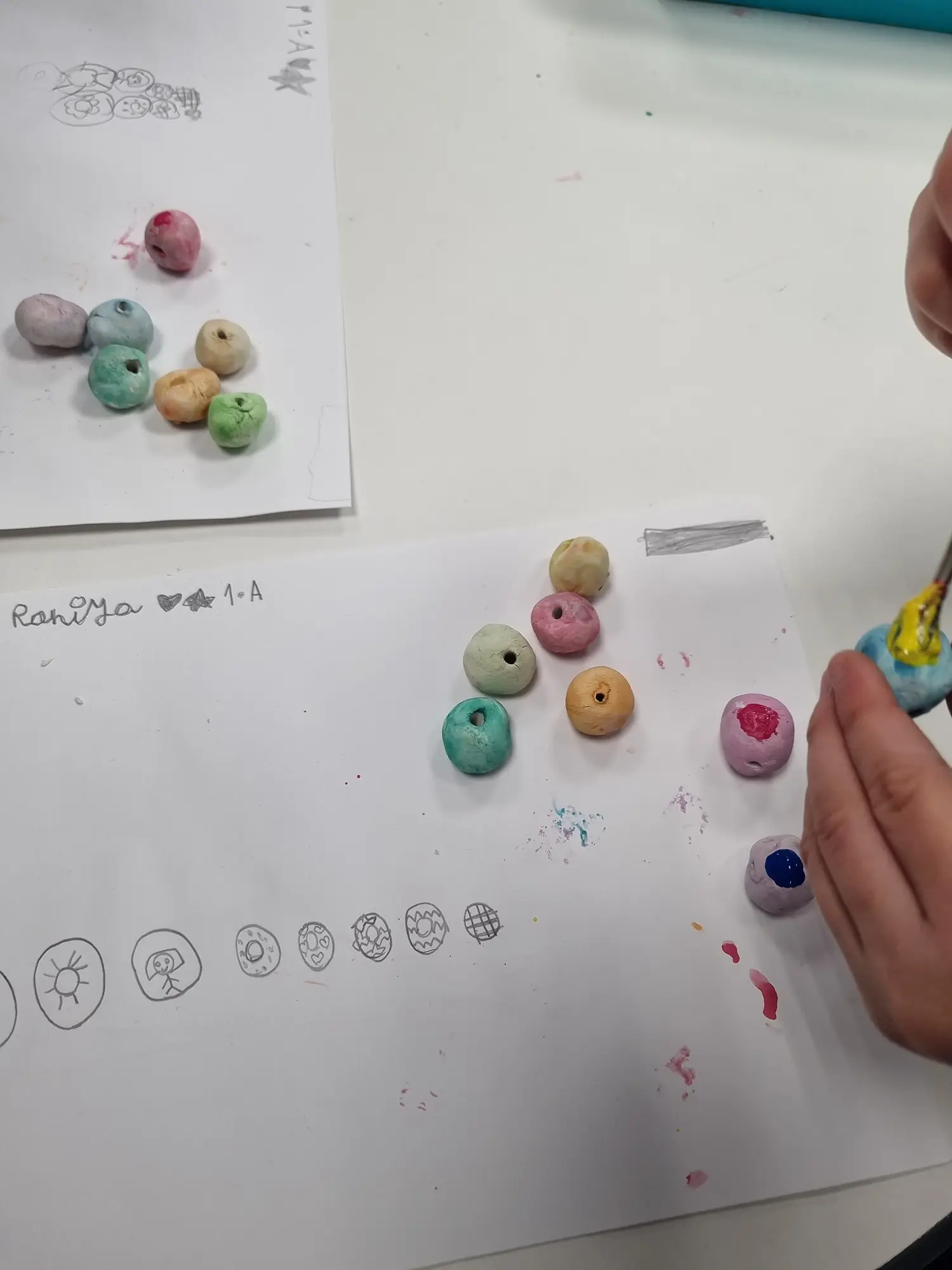 In art class this week, the 1º students have been working on their clay bead projects.