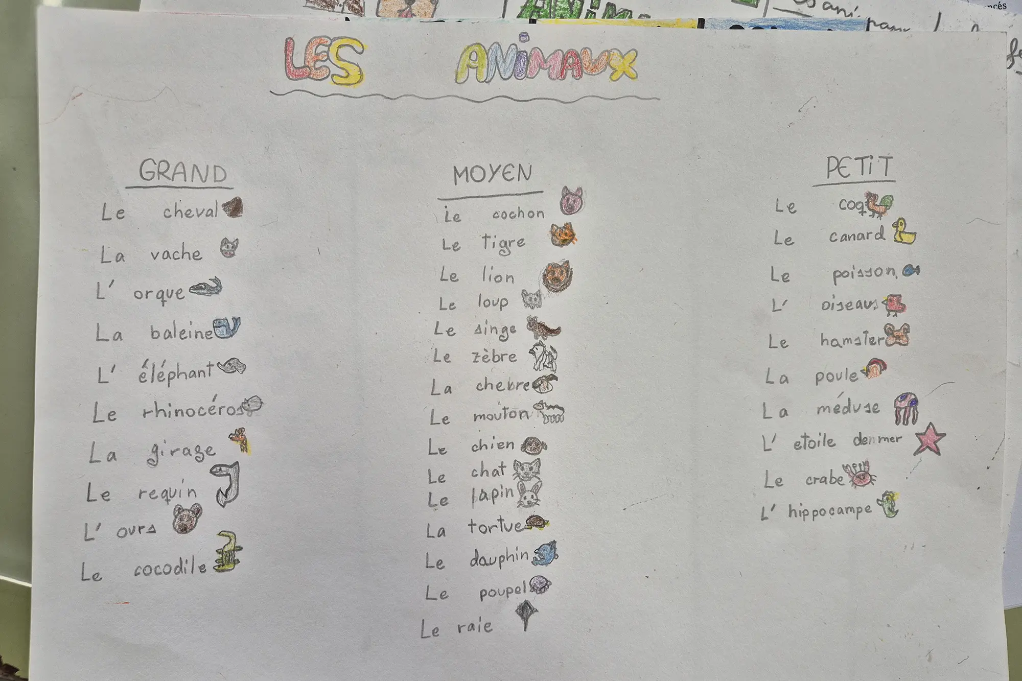 Cette semaine, les élèves de 4e primaire ont eu l’occasion d’explorer le monde fascinant des animaux à travers un projet stimulant et enrichissant. Après avoir appris de nouveaux mots liés aux animaux, chacun a pu mettre ses connaissances à profit en créant sa propre classification.
