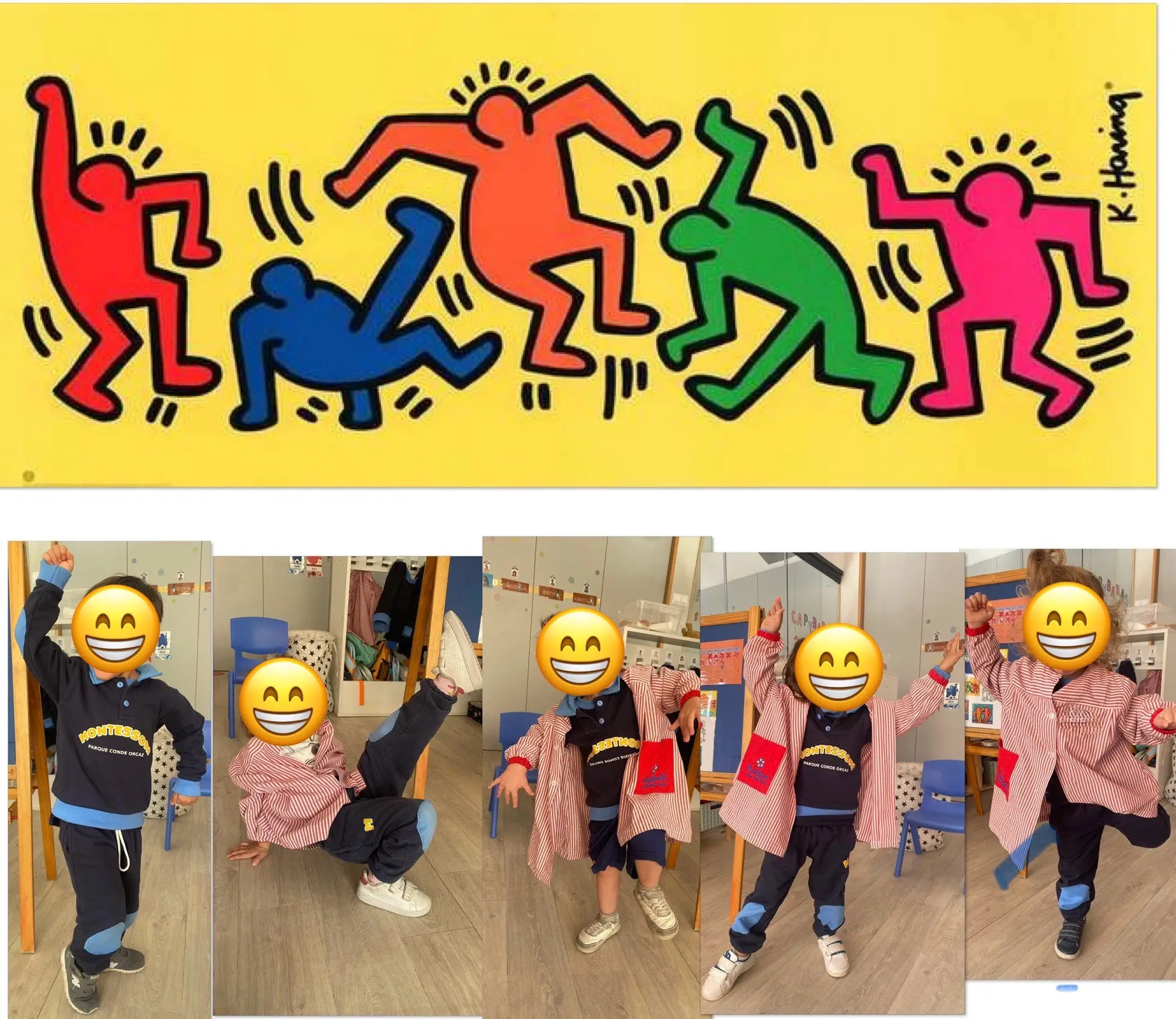 Finalmente, para profundizar nuestra comprensión del trabajo de Haring, decidimos imitar algunas de sus obras más icónicas. Exploramos diferentes maneras en las que nuestros cuerpos pueden moverse y expresarse, recreando dinámicas y posturas que reflejan la energía de sus figuras. Esta parte del proyecto no solo fue divertida, sino que también nos permitió experimentar cómo el arte puede ser un medio para celebrar el movimiento y la diversidad de nuestros cuerpos.