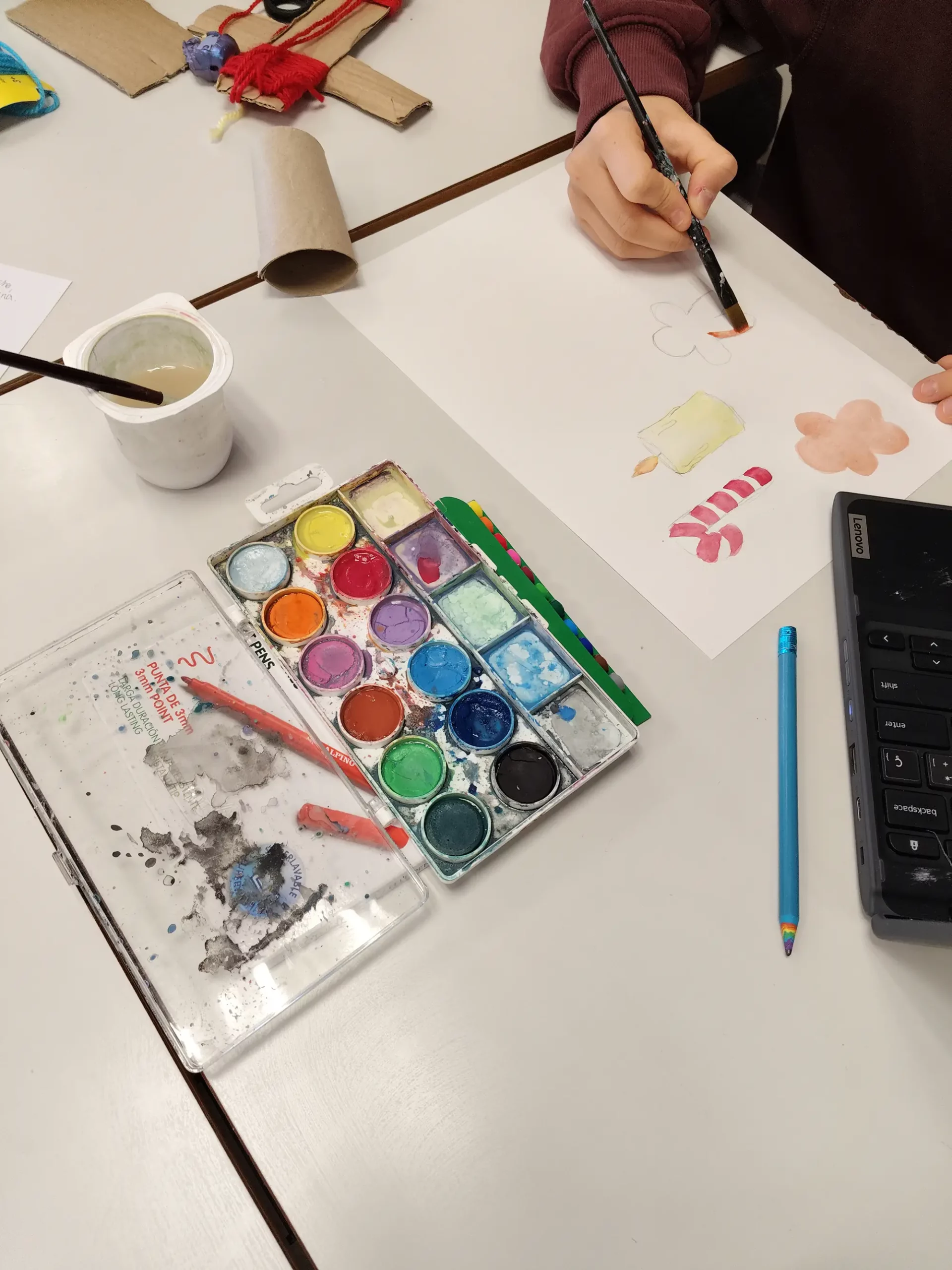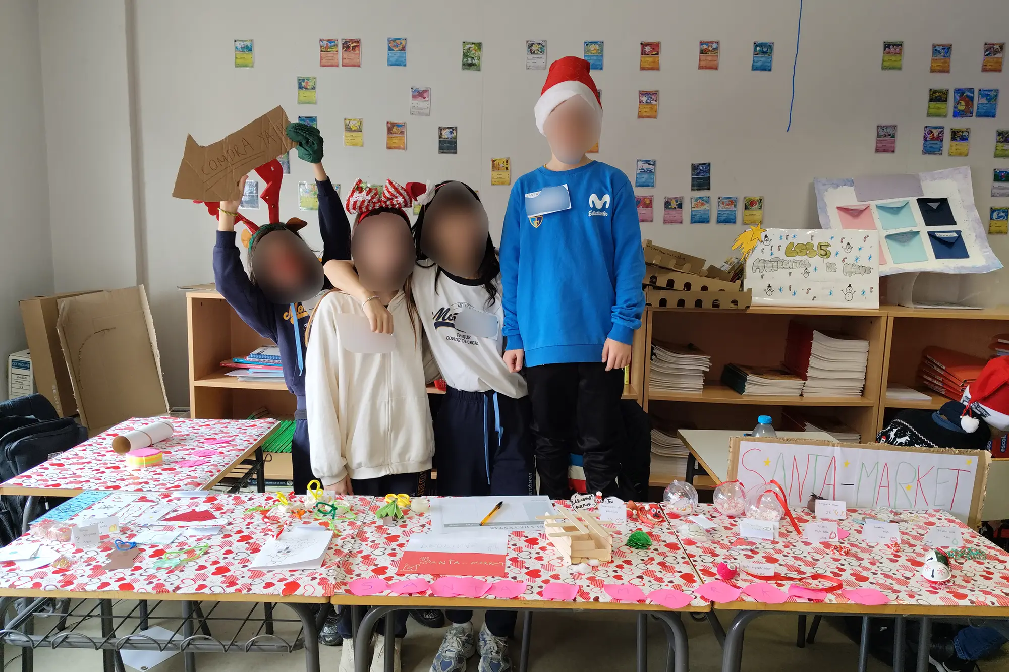 Los alumnos se esmeraron también en atraer a sus clientes —compañeros de 2º y 3º de Primaria— creando loterías, packs de descuento, ofertas 2×1 e incluso sorteos para quienes realizaban compras en sus puestos. Con dinero ficticio, los más pequeños se convirtieron en compradores por un día, mientras los mayores les ayudaban con el cambio.