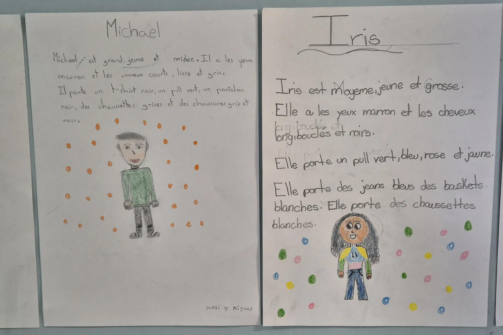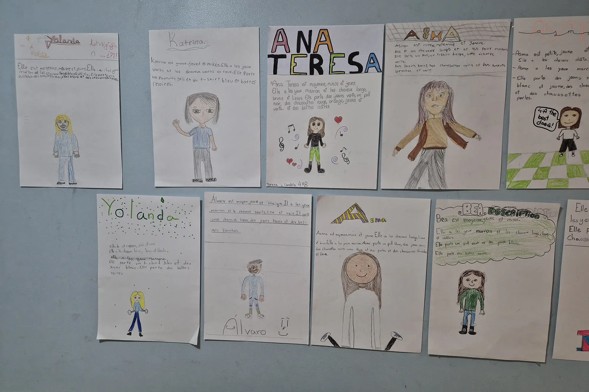 En 4ème de Primaire, nous avons réalisé une activité de français centrée sur la description physique et le vocabulaire des vêtements. Les élèves ont décrit différents professeurs en mettant en pratique ce que nous avions travaillé en classe. Le moment le plus amusant a été d’essayer de deviner de quel professeur il s’agissait, ce qui a provoqué des rires et beaucoup de participation. Ainsi, ils ont enrichi leur vocabulaire et amélioré la précision de leurs descriptions.