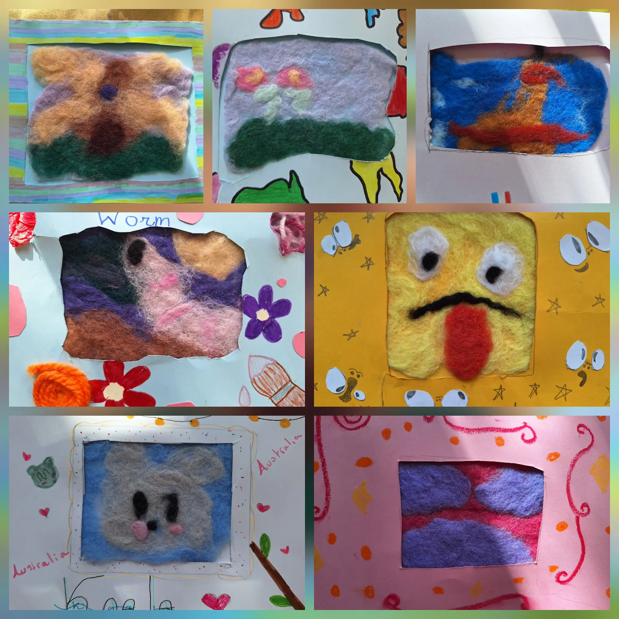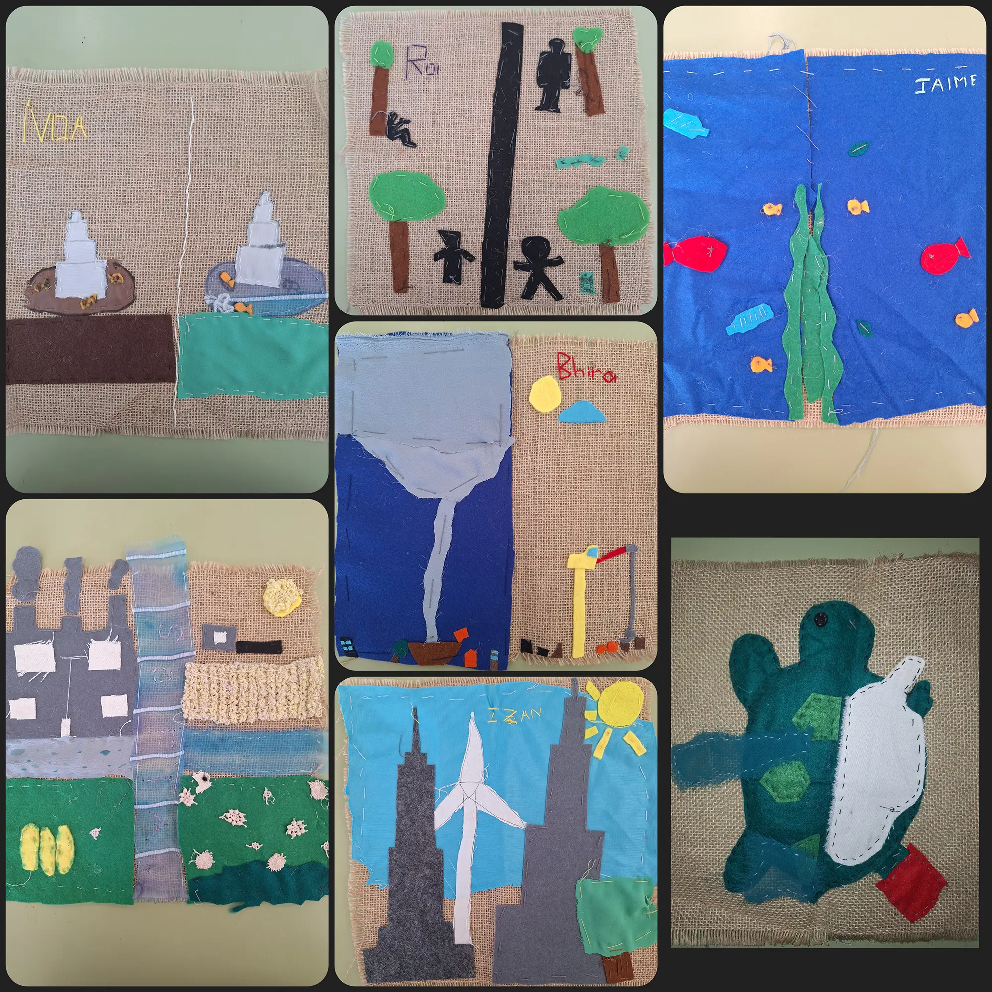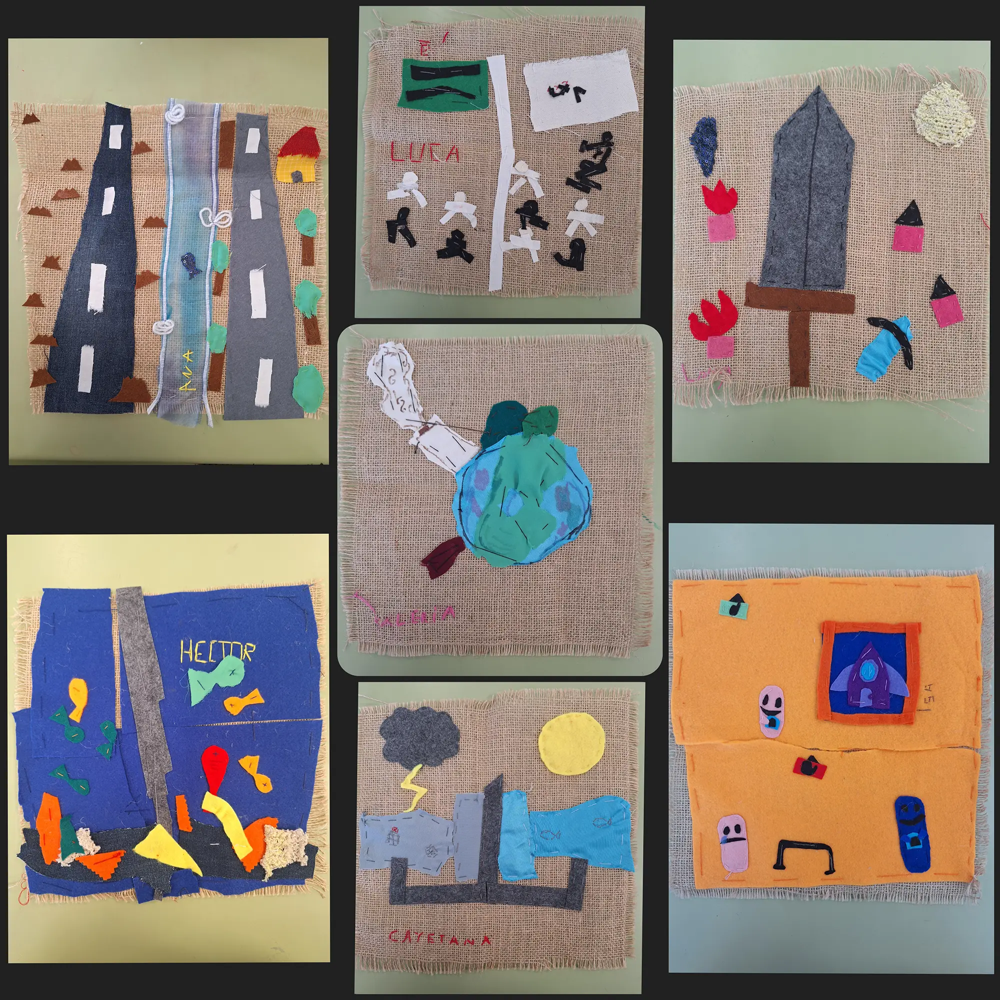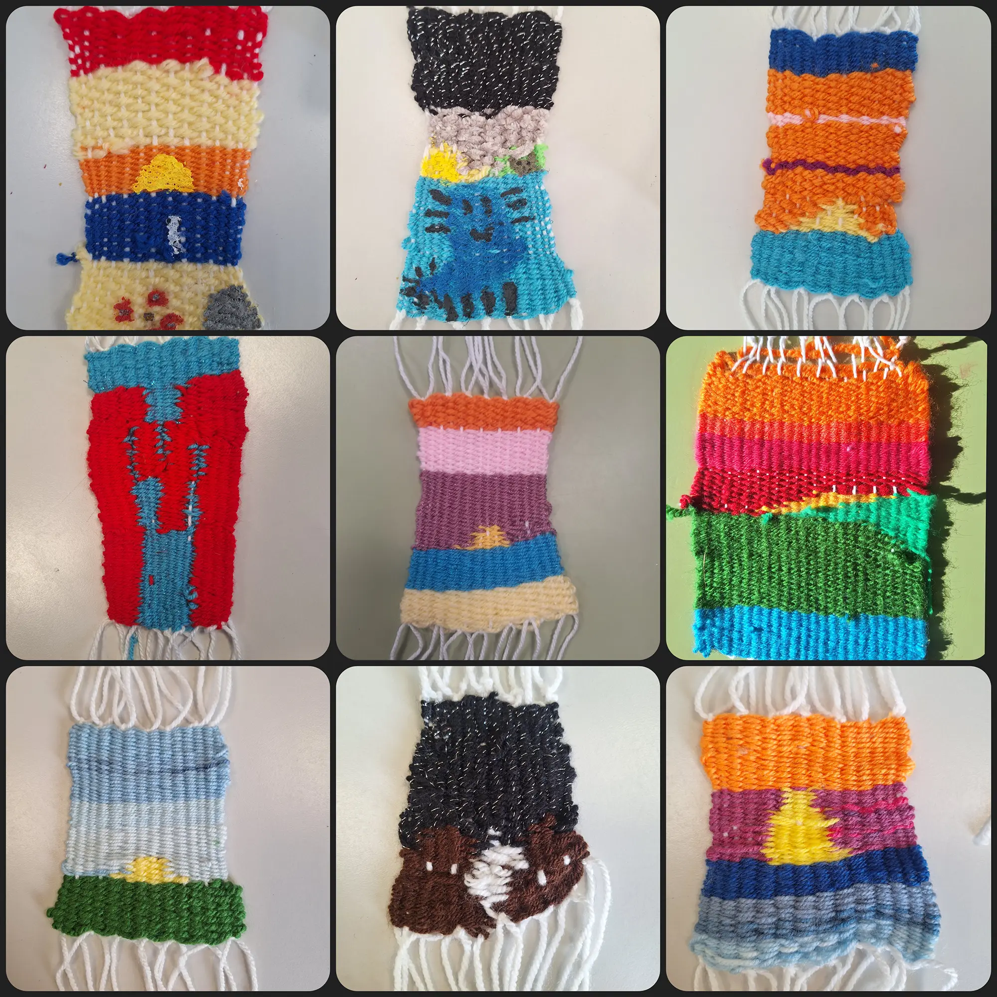 Con la llegada de los vientos invernales, nuestros alumnos se han familiarizado con los tejidos en la clase de Arte. ¿Qué no se puede hacer con un trozo de cuerda, un poco de hilo, algo de lana o incluso tela? Los alumnos de segundo curso crearon preciosas «arañas» con castañas, palitos e hilo. En tercer grado, comenzamos a aprender el proceso de tejer creando tejidos circulares que terminaron pareciéndose a medusas. Los alumnos de cuarto grado llevaron sus conocimientos de tejido al siguiente nivel, creando tapices pintados que ellos mismos diseñaron, cada uno tan único como ellos mismos. En quinto grado, los alumnos crearon sus propias piezas de fieltro colocando trozos de lana suelta en una bolsa de plástico con agua jabonosa y agitando hasta que las fibras se unieron. Y los alumnos de sexto grado han diseñado y cosido sus propias «arpilleras» (basadas en las obras de arte chilenas de arpillera), mostrando los problemas sociales que les preocupan y cómo quieren ver el mundo en el futuro. ¡Dios mío, qué mes tan ajetreado ha sido! ¡Y todo eso antes de preparar nuestra despedida navideña!