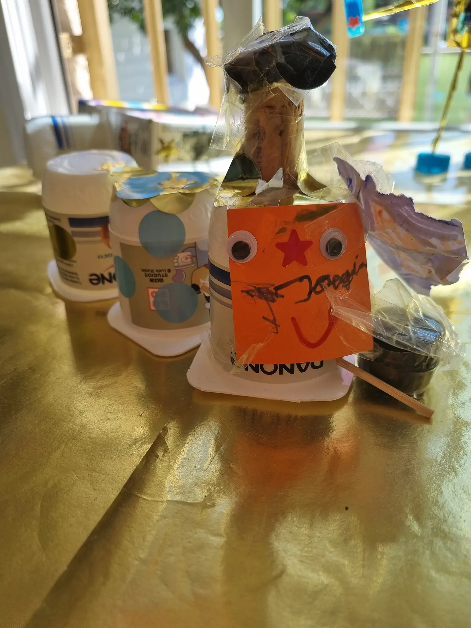 Los alumnos tuvieron total libertad para decidir qué tipo de juguete querían fabricar y dejaron volar su imaginación. El resultado han sido unos diseños preciosos, como robots, barcos, coches, aviones y caleidoscopios, ¡y todos ellos hechos con materiales reciclados! ¡Qué guay!