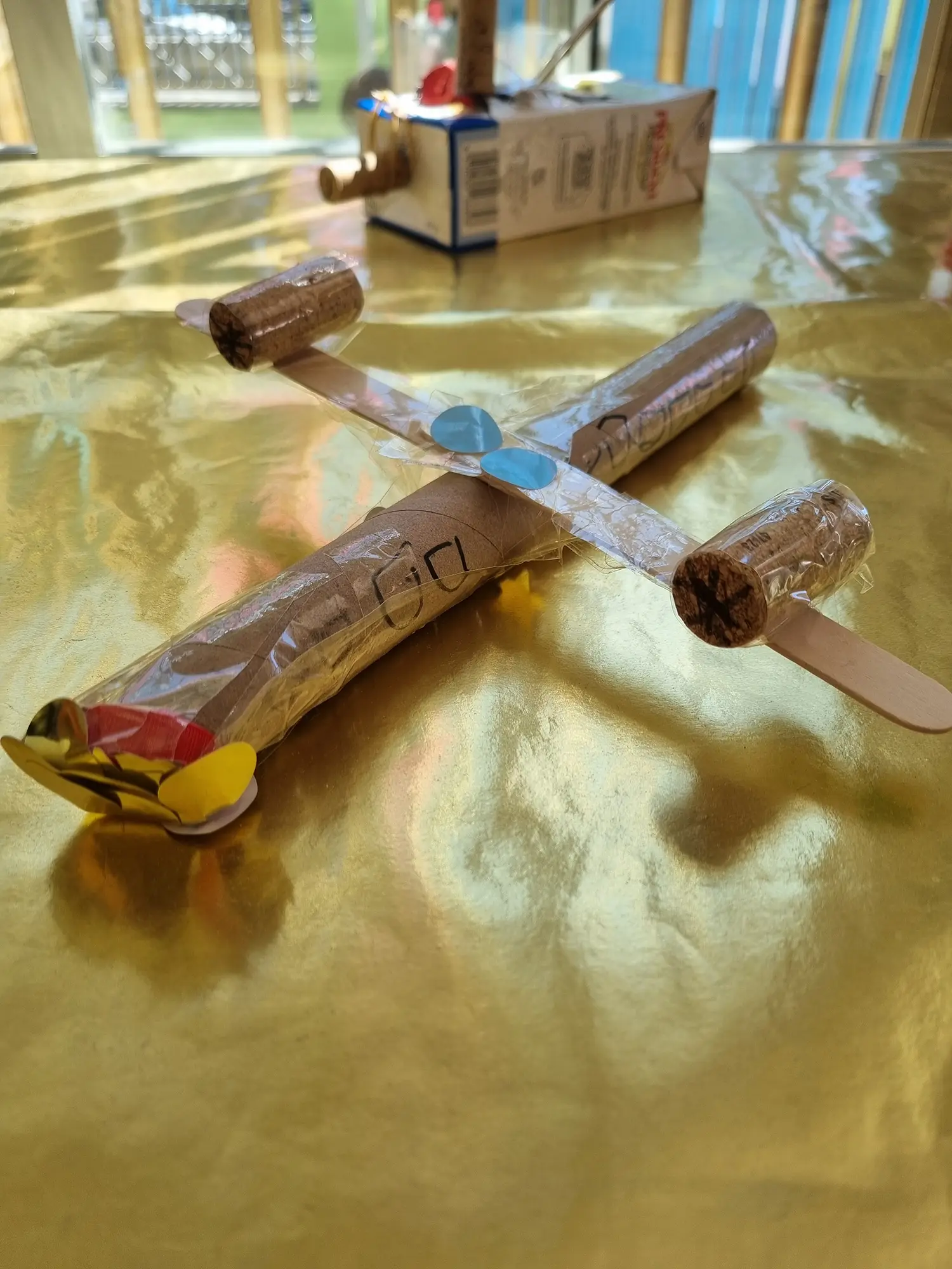 The students had total freedom over what sort of toy they wanted to make and let their imaginations fly. As a result, we have some very lovely designs like robots, boats, cars, airplanes and kaleidoscopes – and all made out of recycled materials! How cool!
